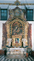 V kartuši (ovalnem polju) nad atiko oltarja je